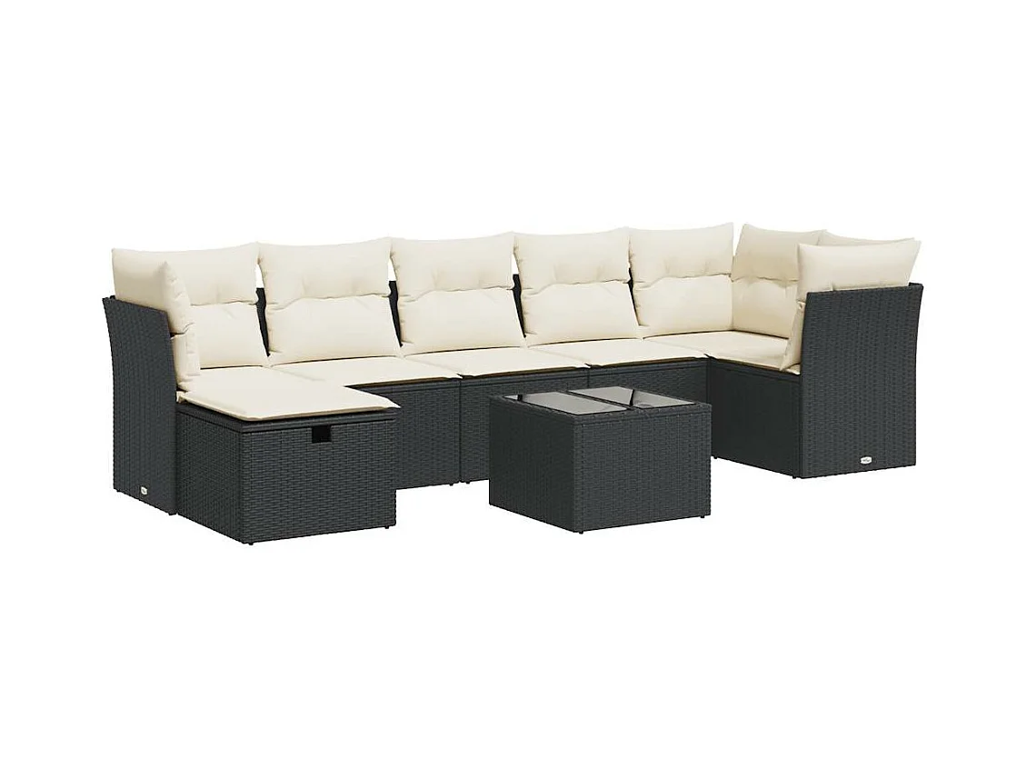 8-delige Loungeset met kussens poly rattan zwart