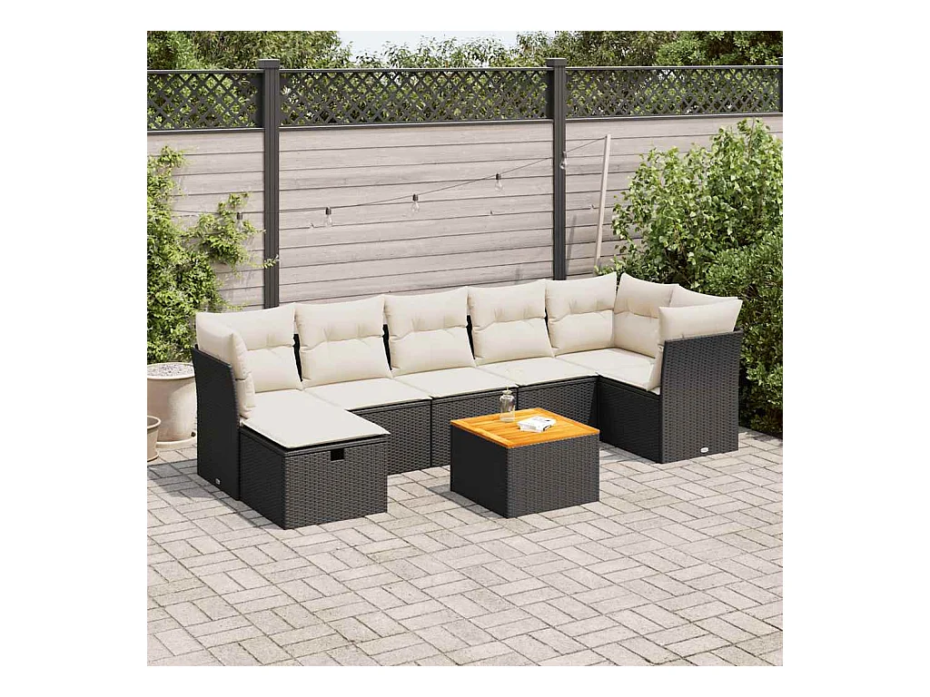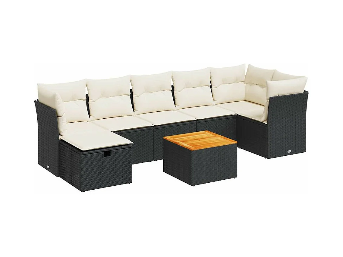 8-delige Loungeset met kussens poly rattan acacia zwart