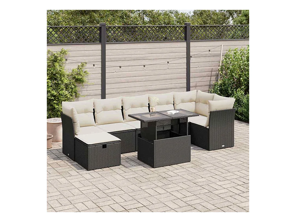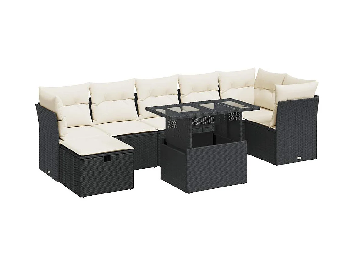 8-delige Loungeset met kussens poly rattan acacia zwart