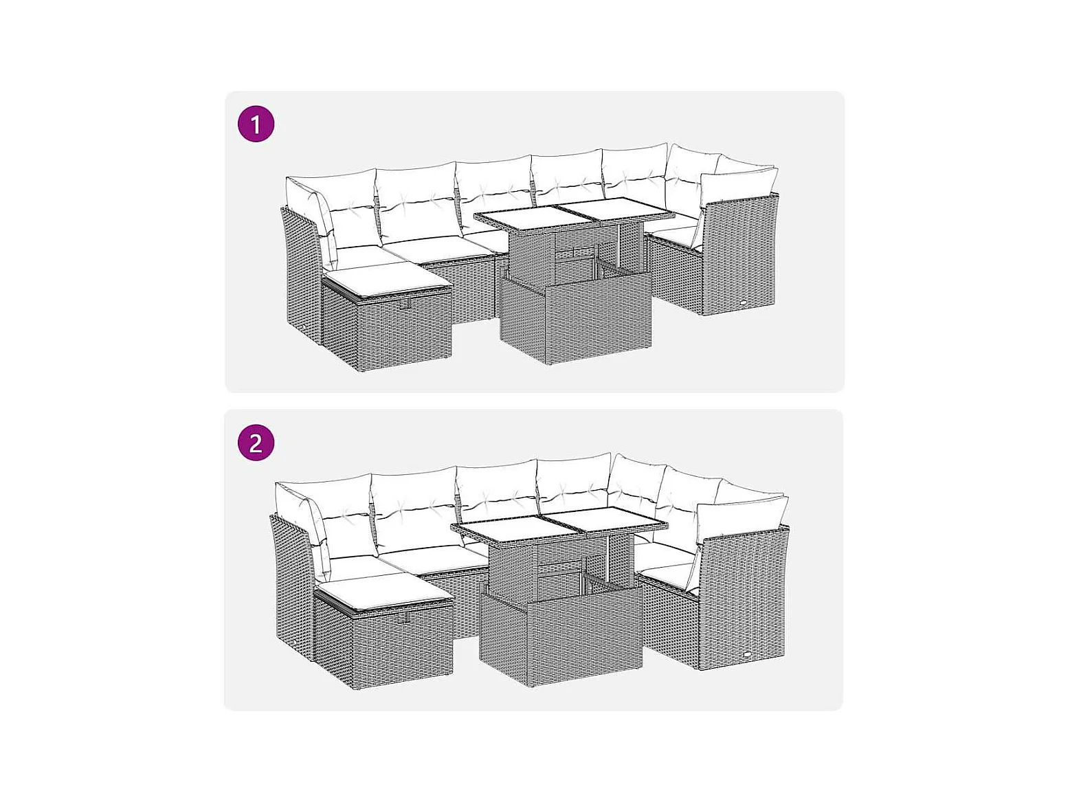 7-delige Loungeset met kussens poly rattan acacia zwart