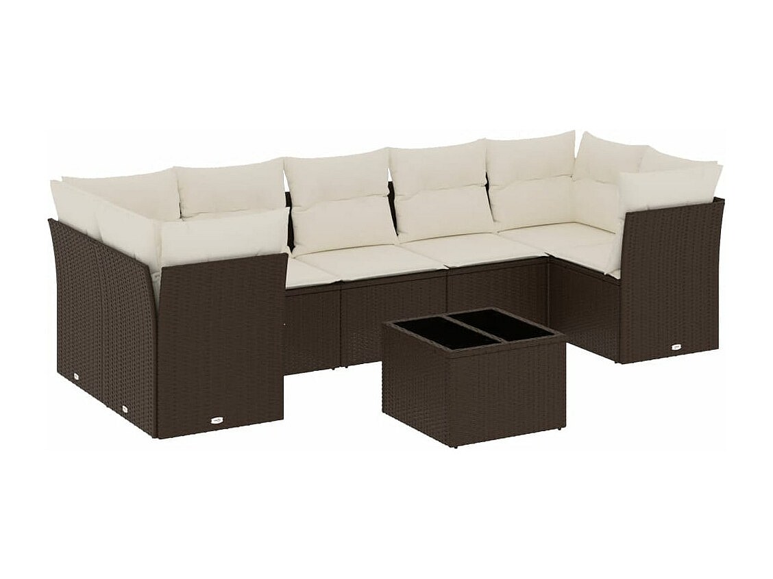 8-delige tuinmeubelset met bruine kussens van gevlochten hars