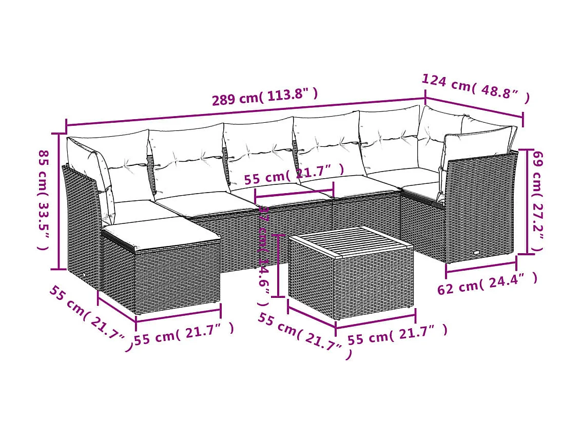 8-delige tuinmeubelset met zwarte kussens van geweven hars