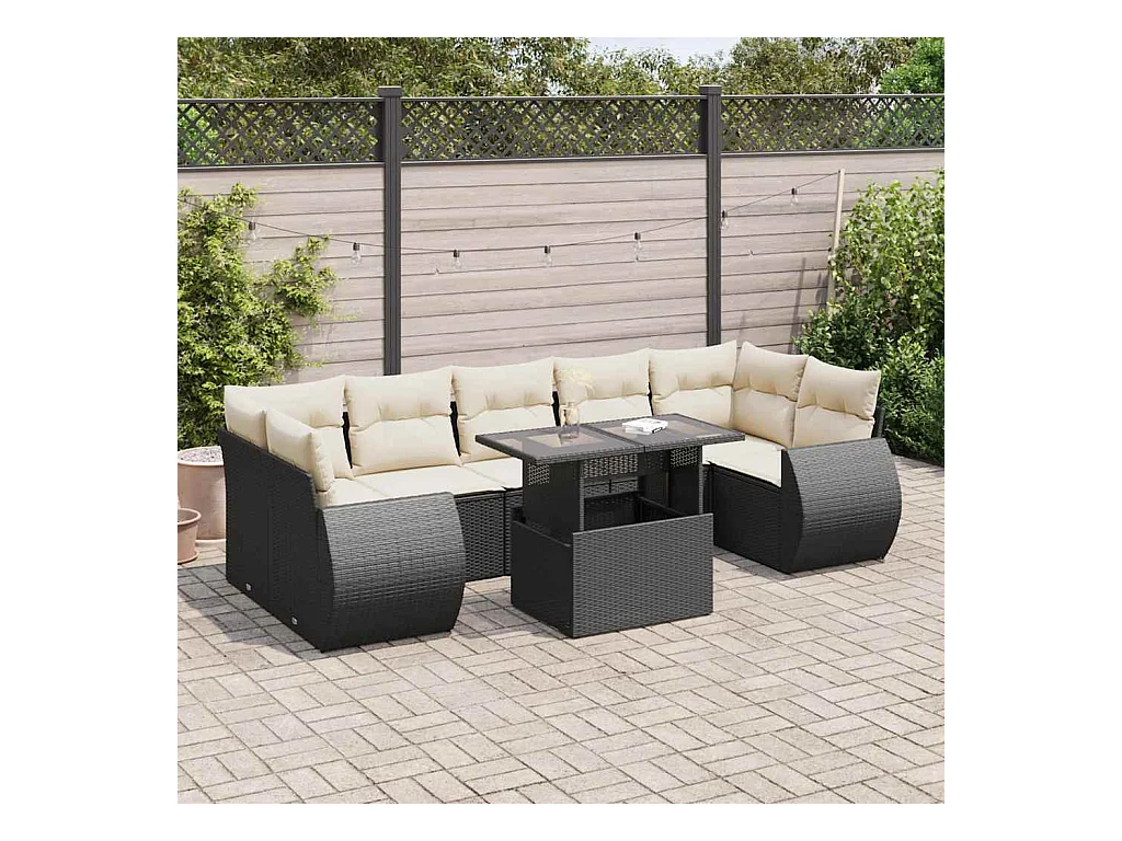 8-delige tuinmeubelset met zwarte kussens van geweven hars