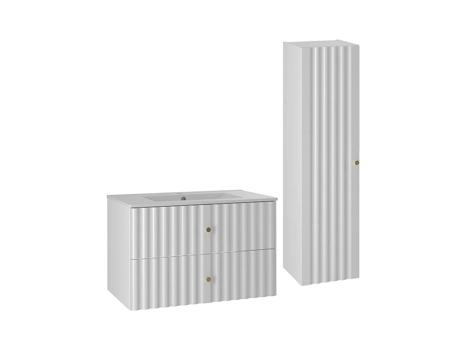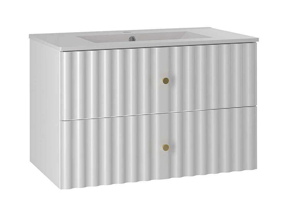80cm enkele wastafel en sokkel Adriel Wit met steeneffect