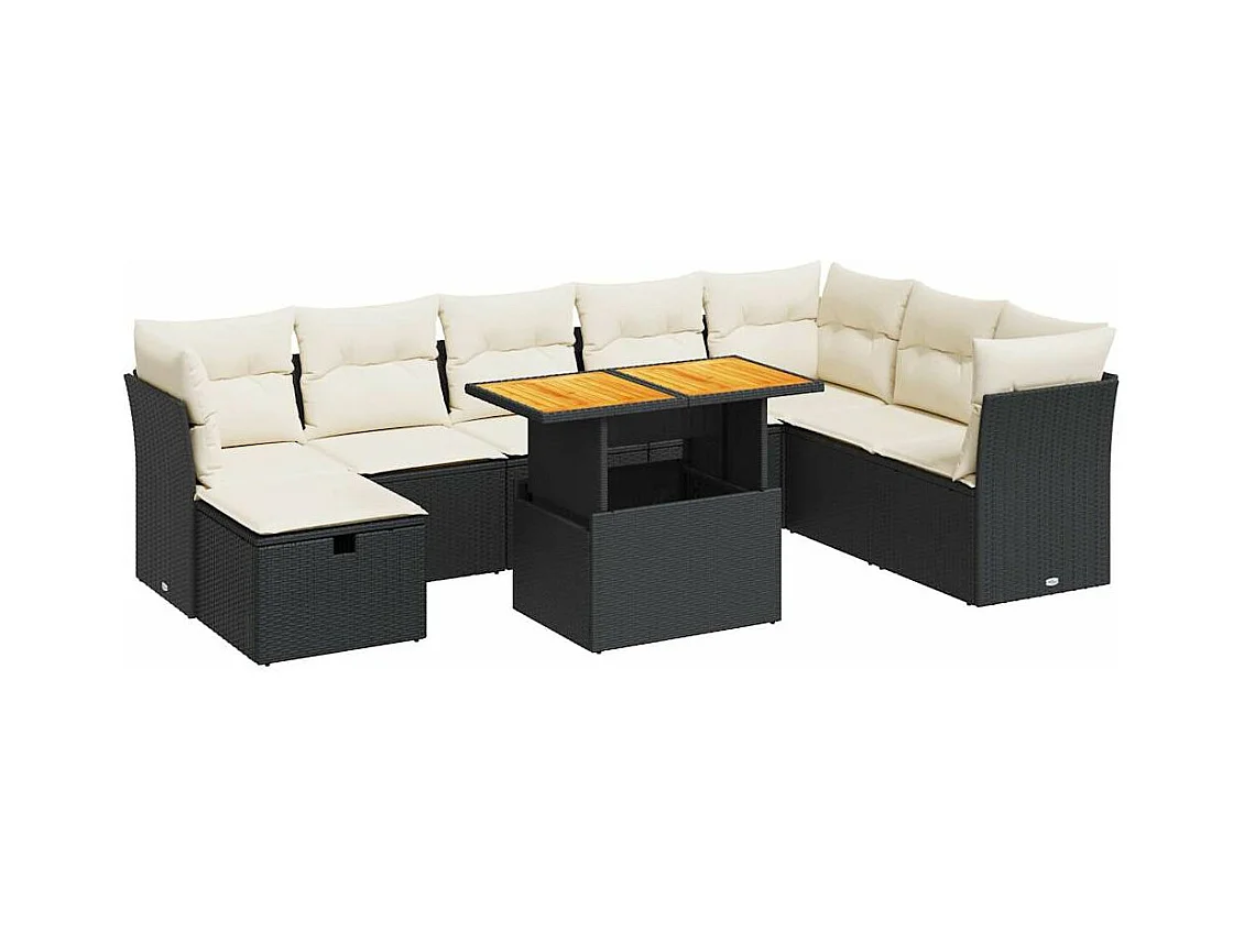 9-delige Loungeset met kussens poly rattan acacia zwart