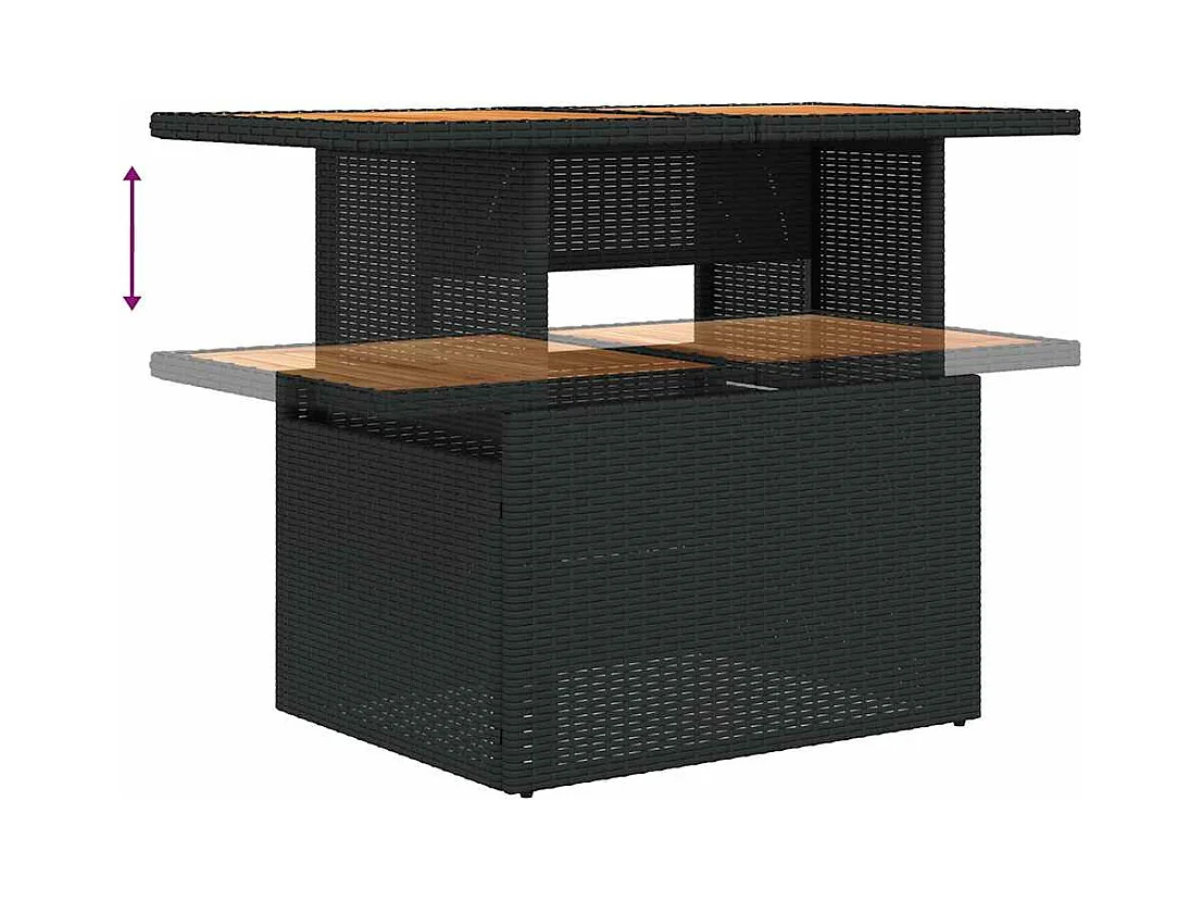 9-delige Loungeset met kussens poly rattan acacia zwart