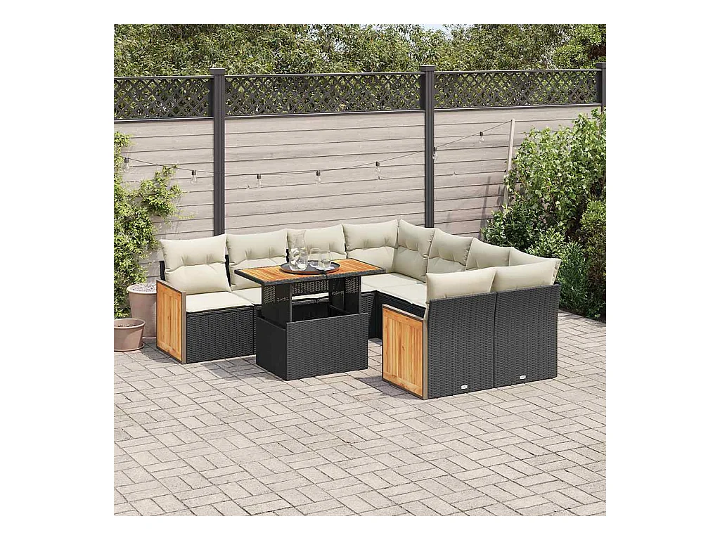 8-delige Loungeset met kussens poly rattan acacia zwart