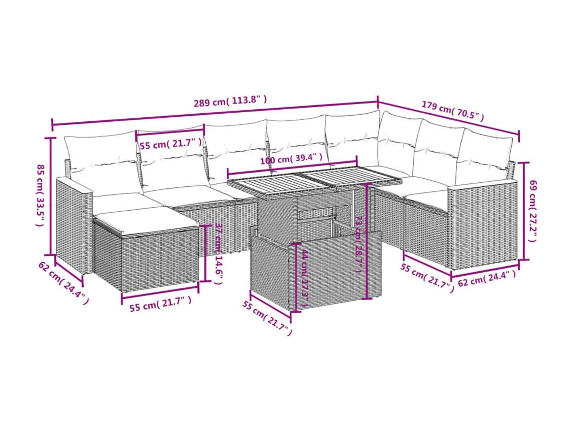 8-delige Loungeset met kussens poly rattan beige