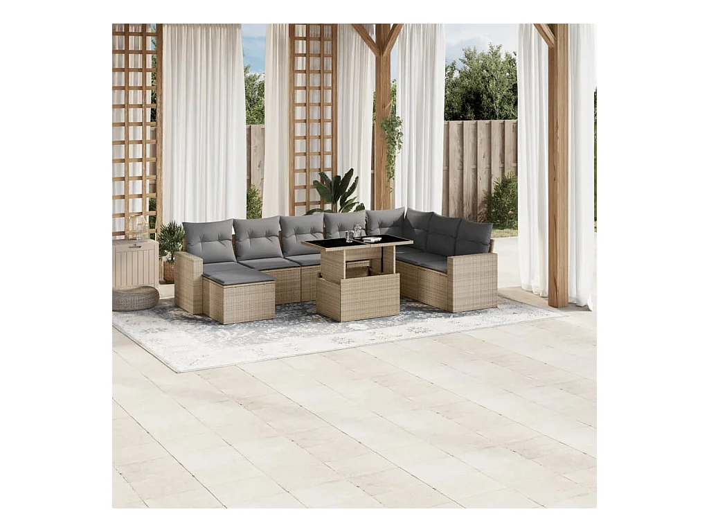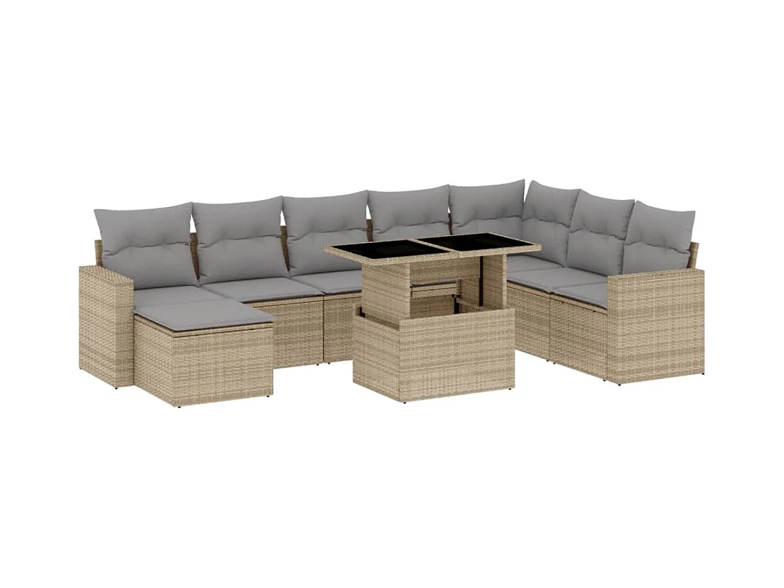 9-delige Loungeset met kussens poly rattan beige