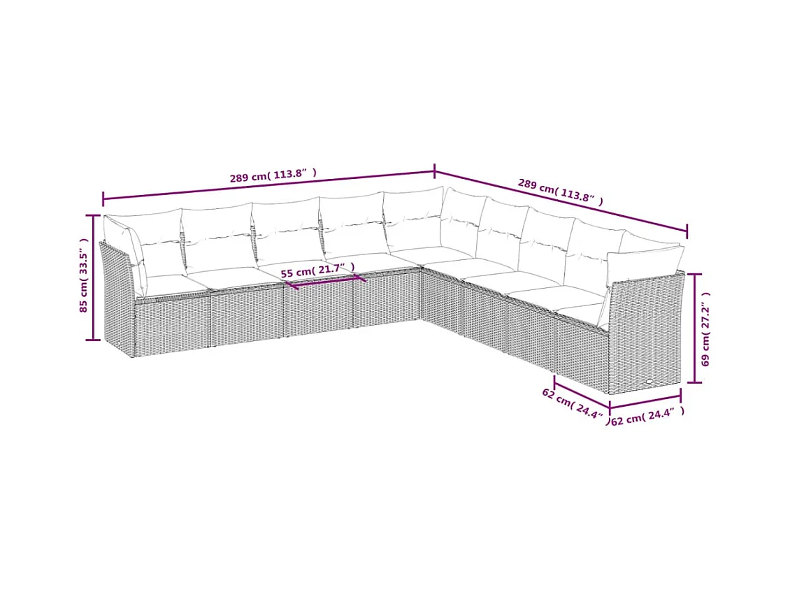9-delige Loungeset met kussens poly rattan lichtgrijs