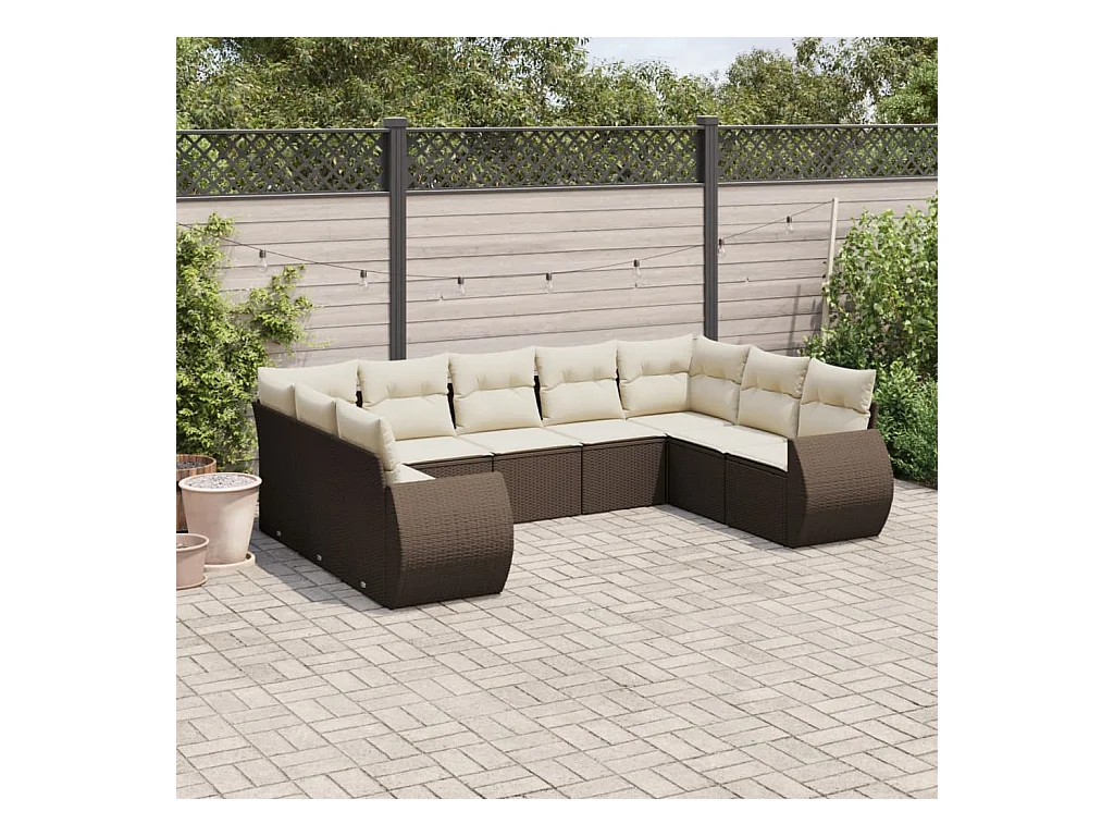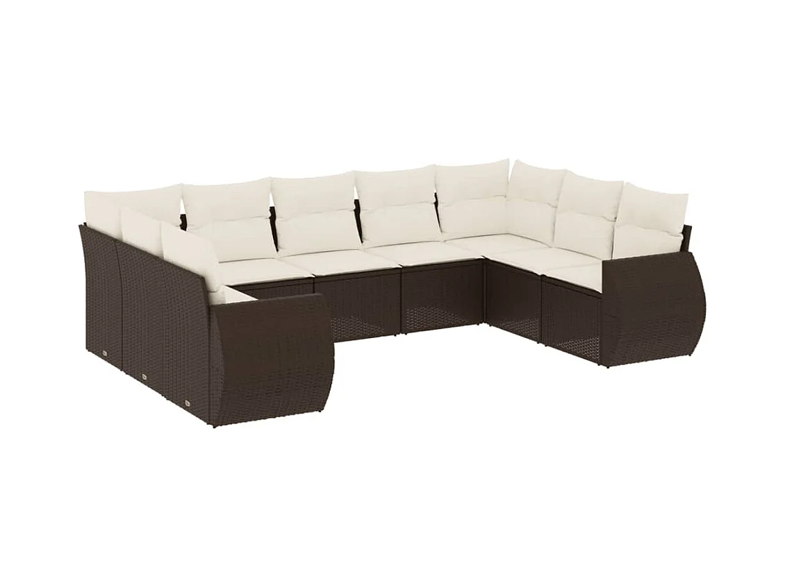 9-delige Loungeset met kussens poly rattan bruin