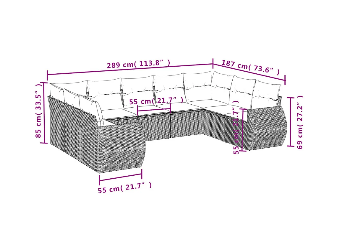 10-delige Loungeset met kussens poly rattan bruin