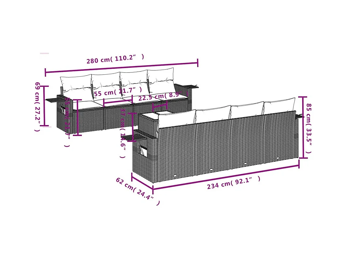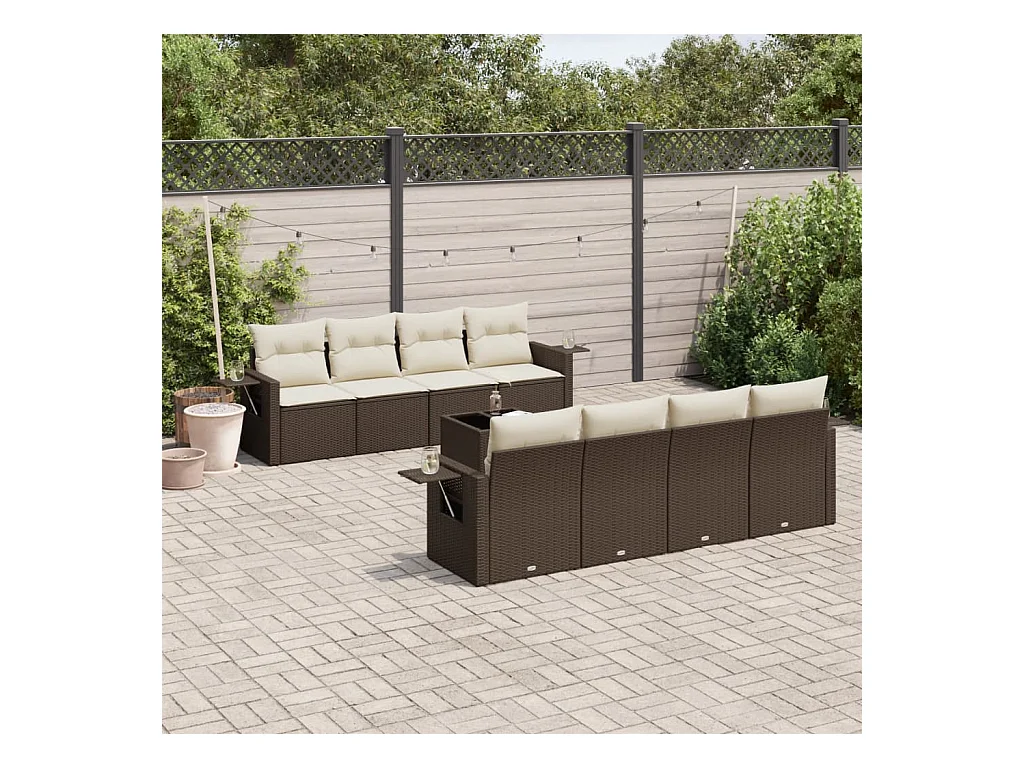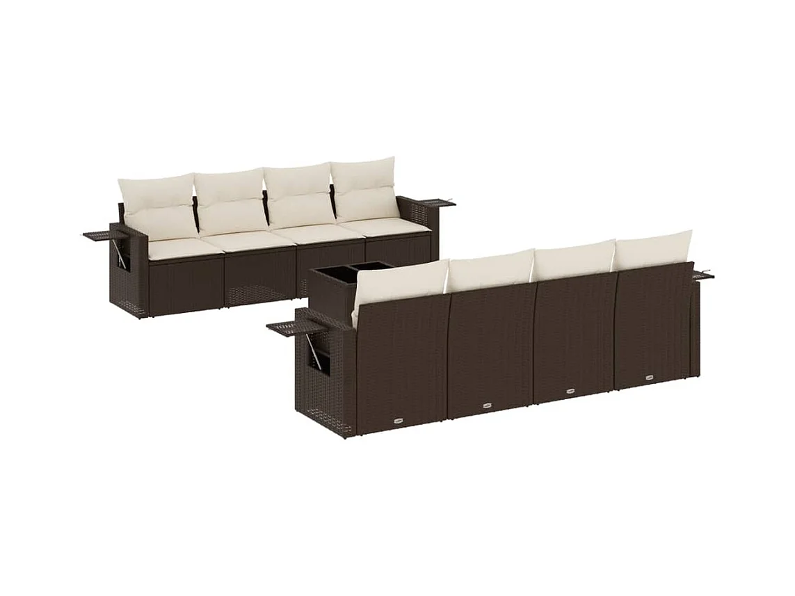 9-delige Loungeset met kussens poly rattan bruin