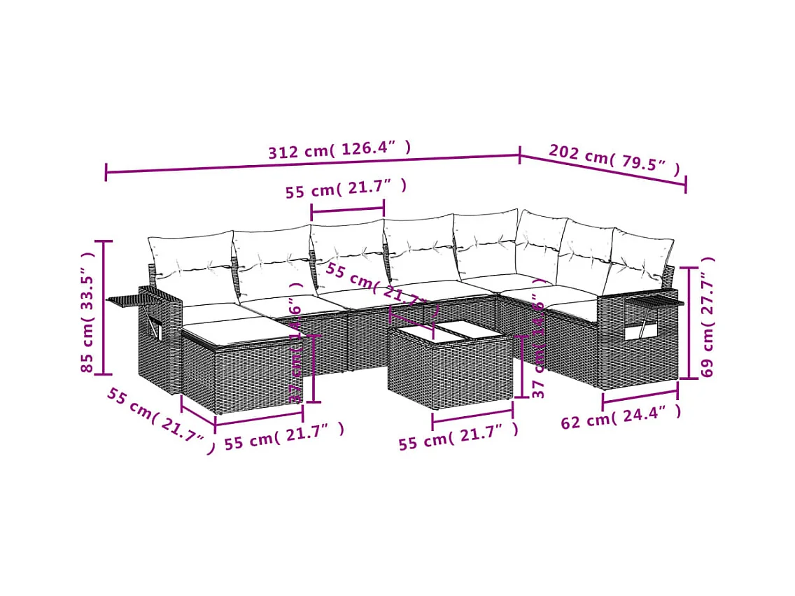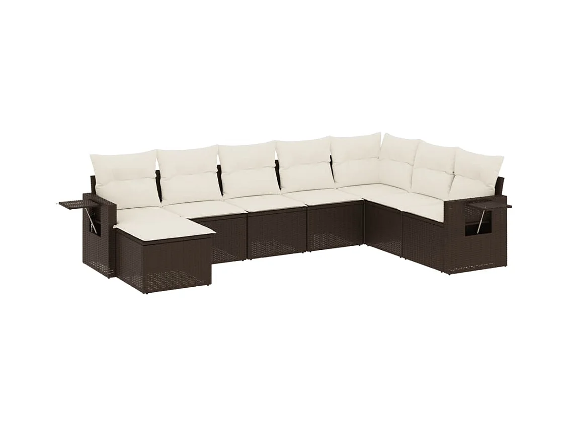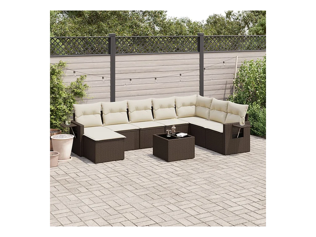 9-delige Loungeset met kussens poly rattan bruin