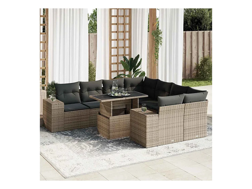 9-delige Loungeset met kussens poly rattan lichtgrijs