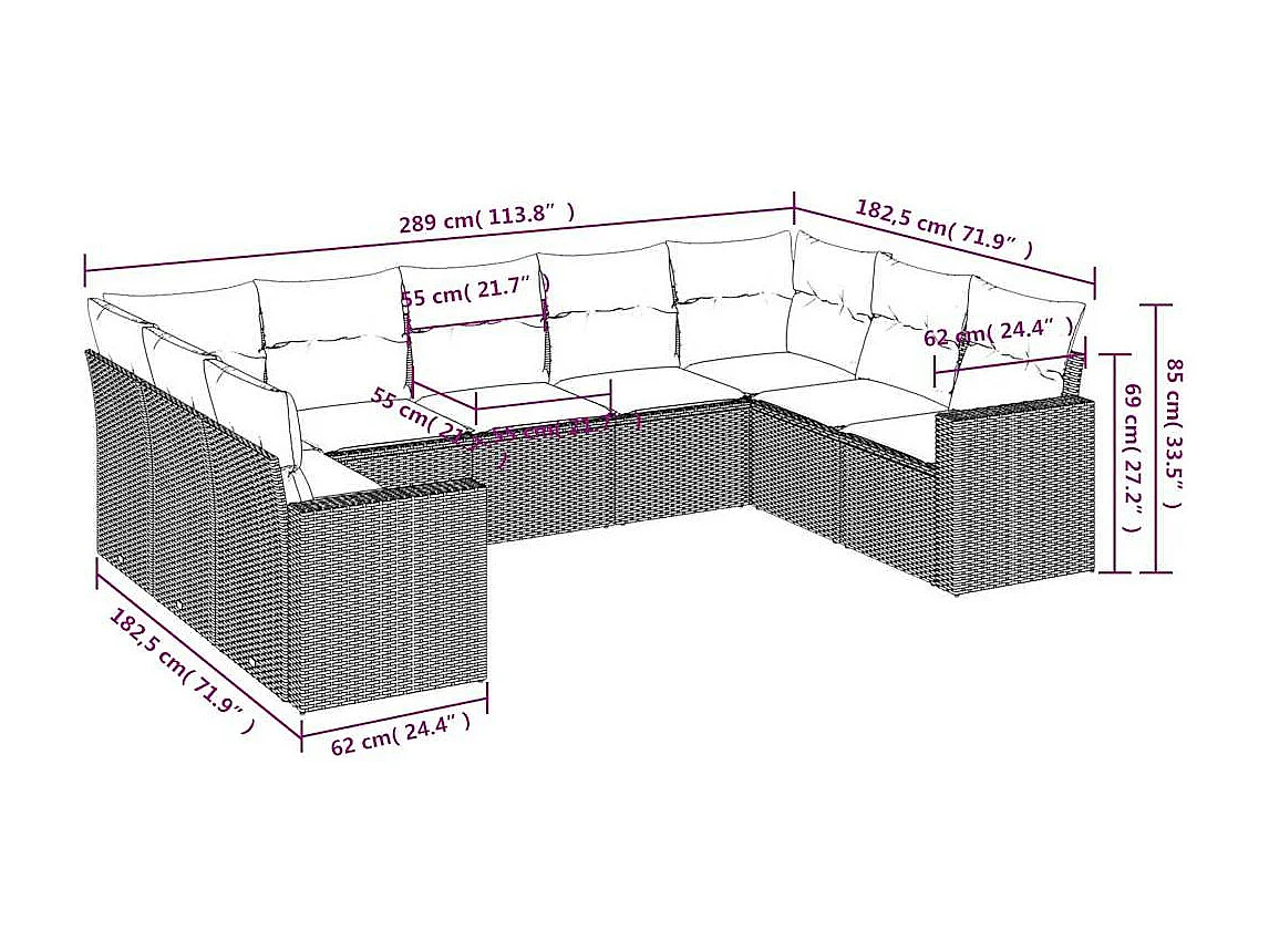 9-delige tuinmeubelen met grijs geweven harskussens