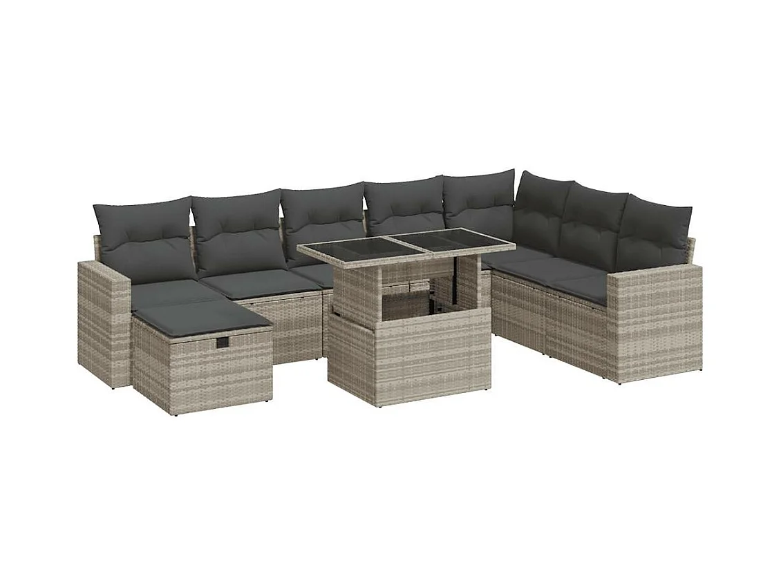 9-delige Loungeset met kussens poly rattan lichtgrijs