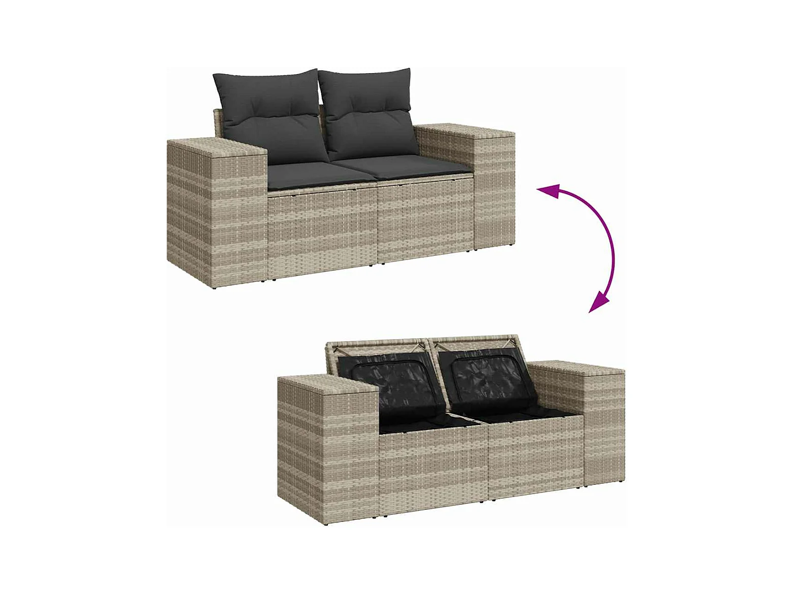 8-delige Loungeset met kussens poly rattan lichtgrijs