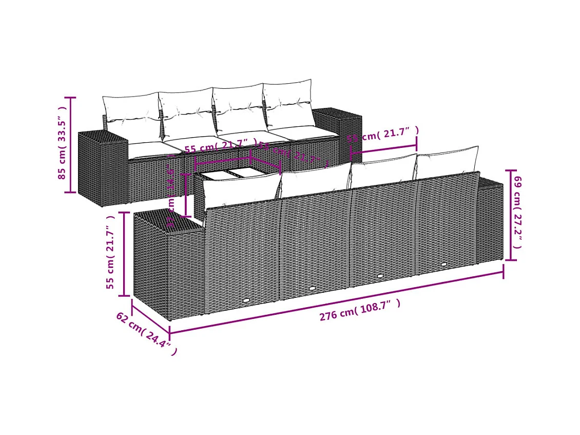 8-delige Loungeset met kussens poly rattan lichtgrijs