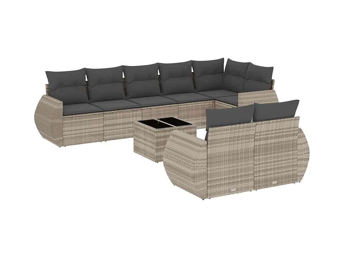 9-delige Loungeset met kussens poly rattan lichtgrijs