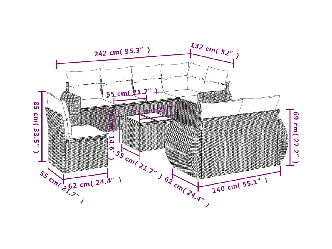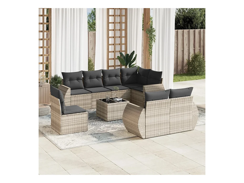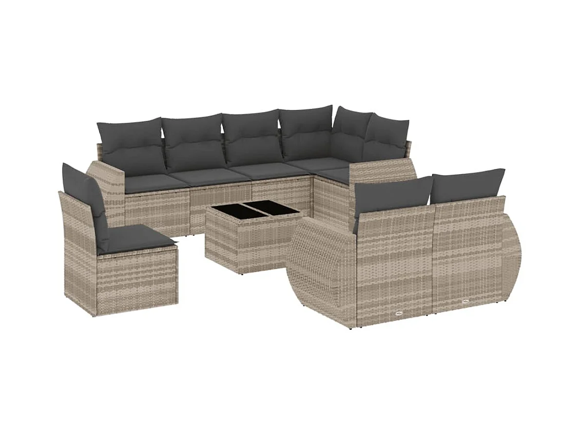 9-delige Loungeset met kussens poly rattan lichtgrijs