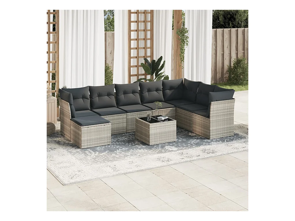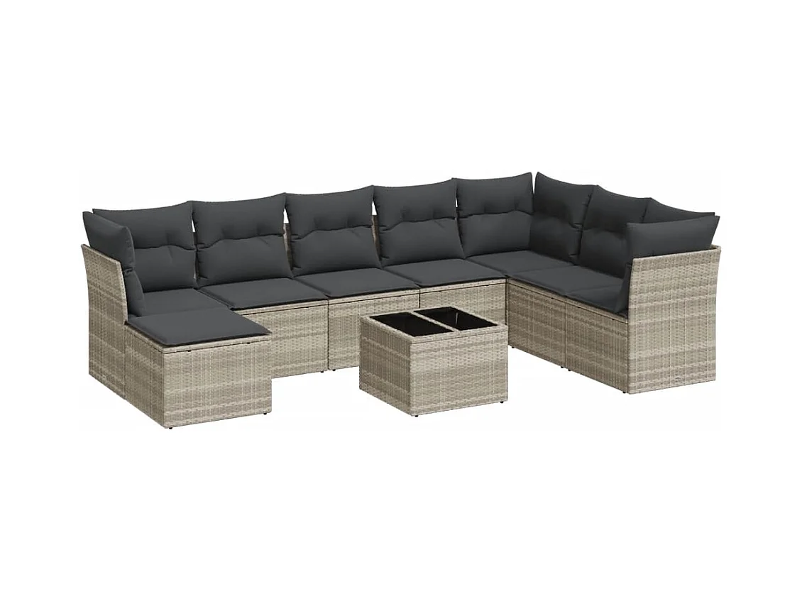 9-delige Loungeset met kussens poly rattan lichtgrijs