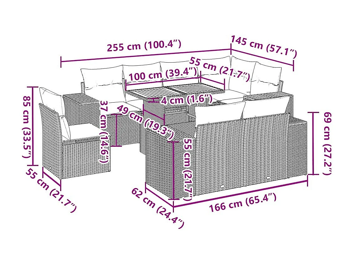 9-delige Loungeset met kussens poly rattan acacia zwart