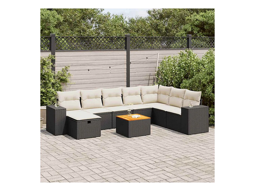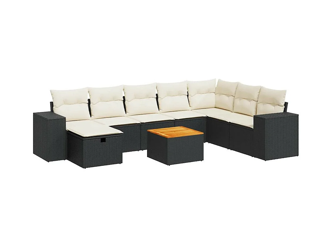 9-delige Loungeset met kussens poly rattan acacia zwart