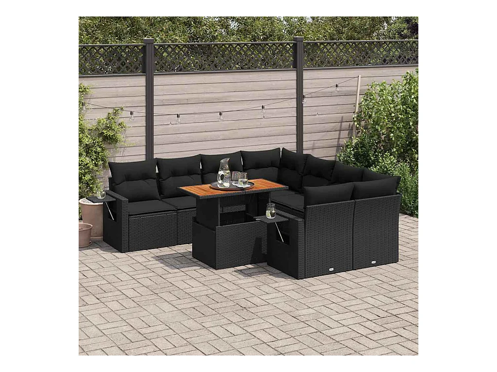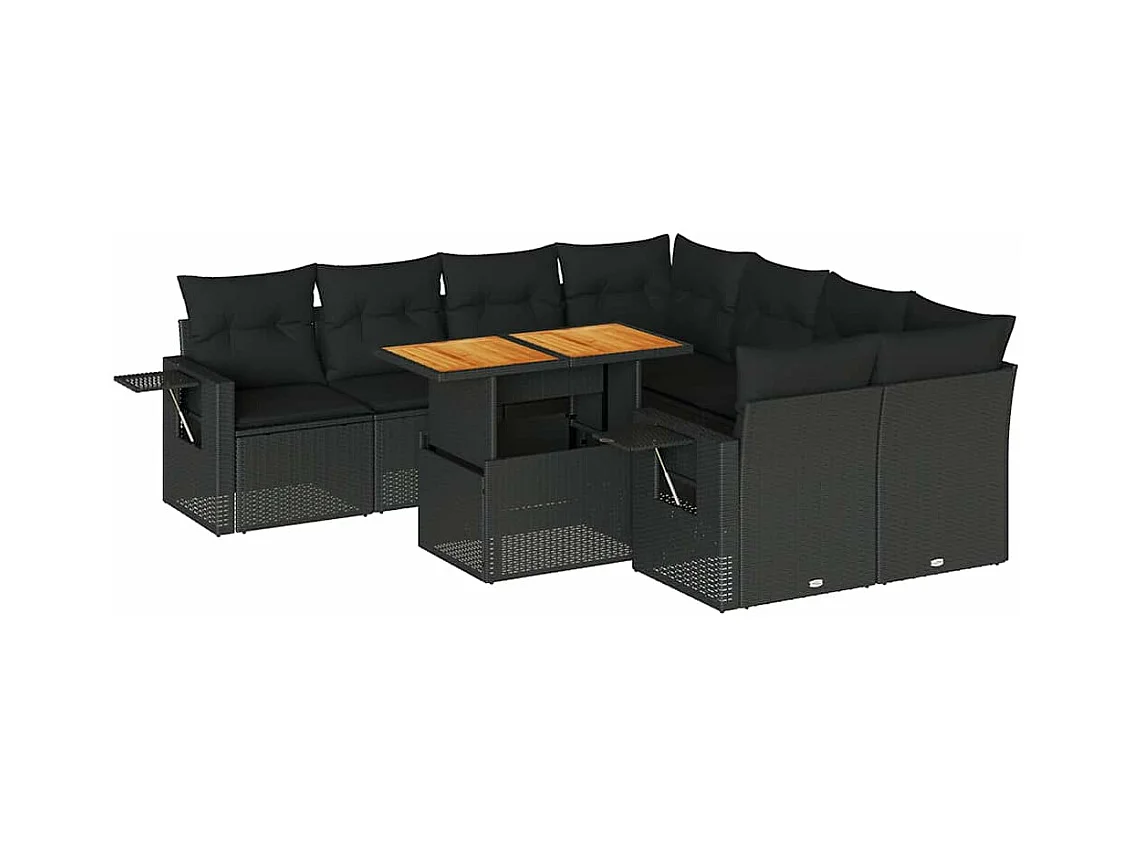9-delige Loungeset met kussens poly rattan acacia zwart