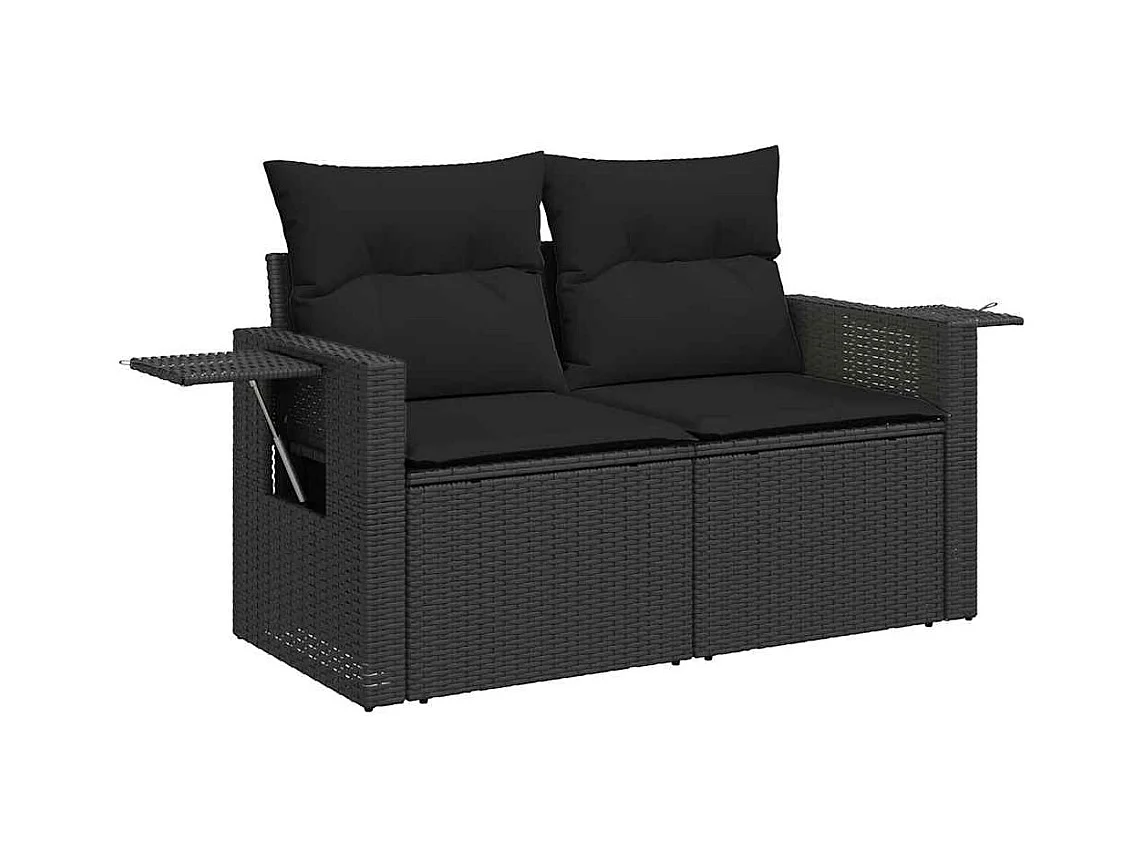 8-delige Loungeset met kussens poly rattan acacia zwart
