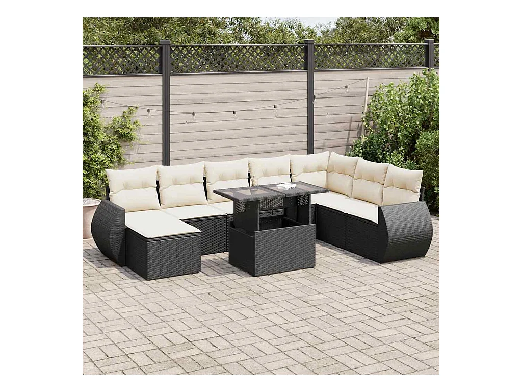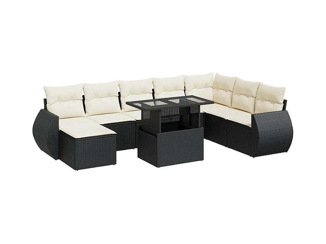 9-delige Loungeset met kussens poly rattan acacia zwart