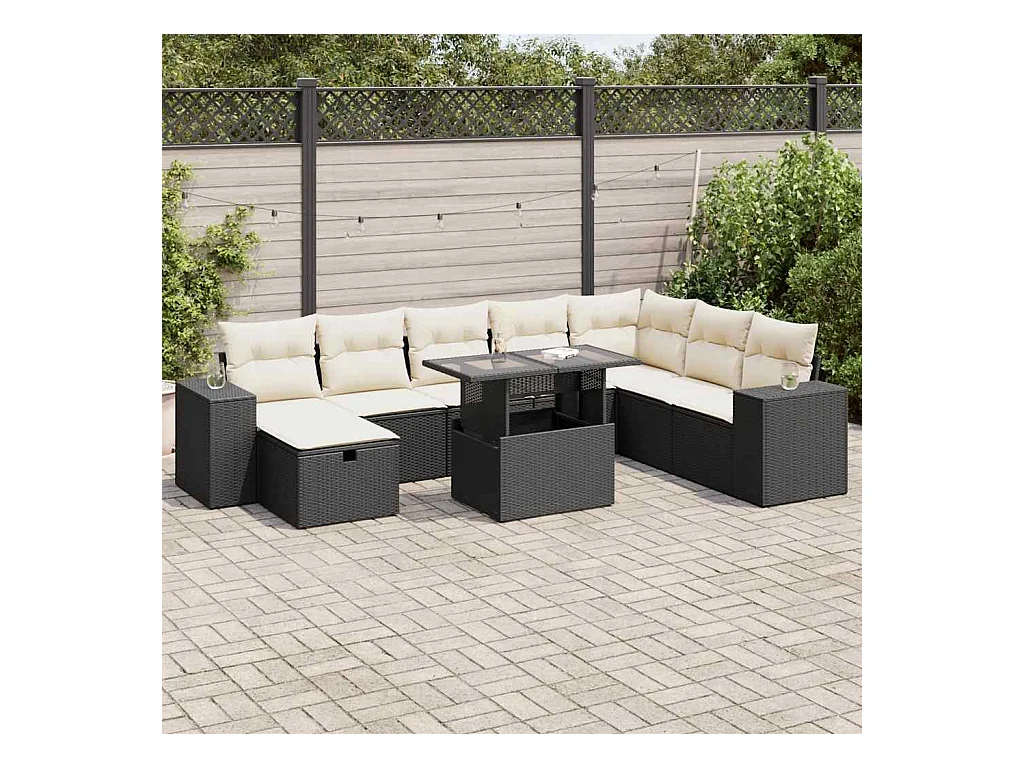 9-delige Loungeset met kussens poly rattan acacia zwart