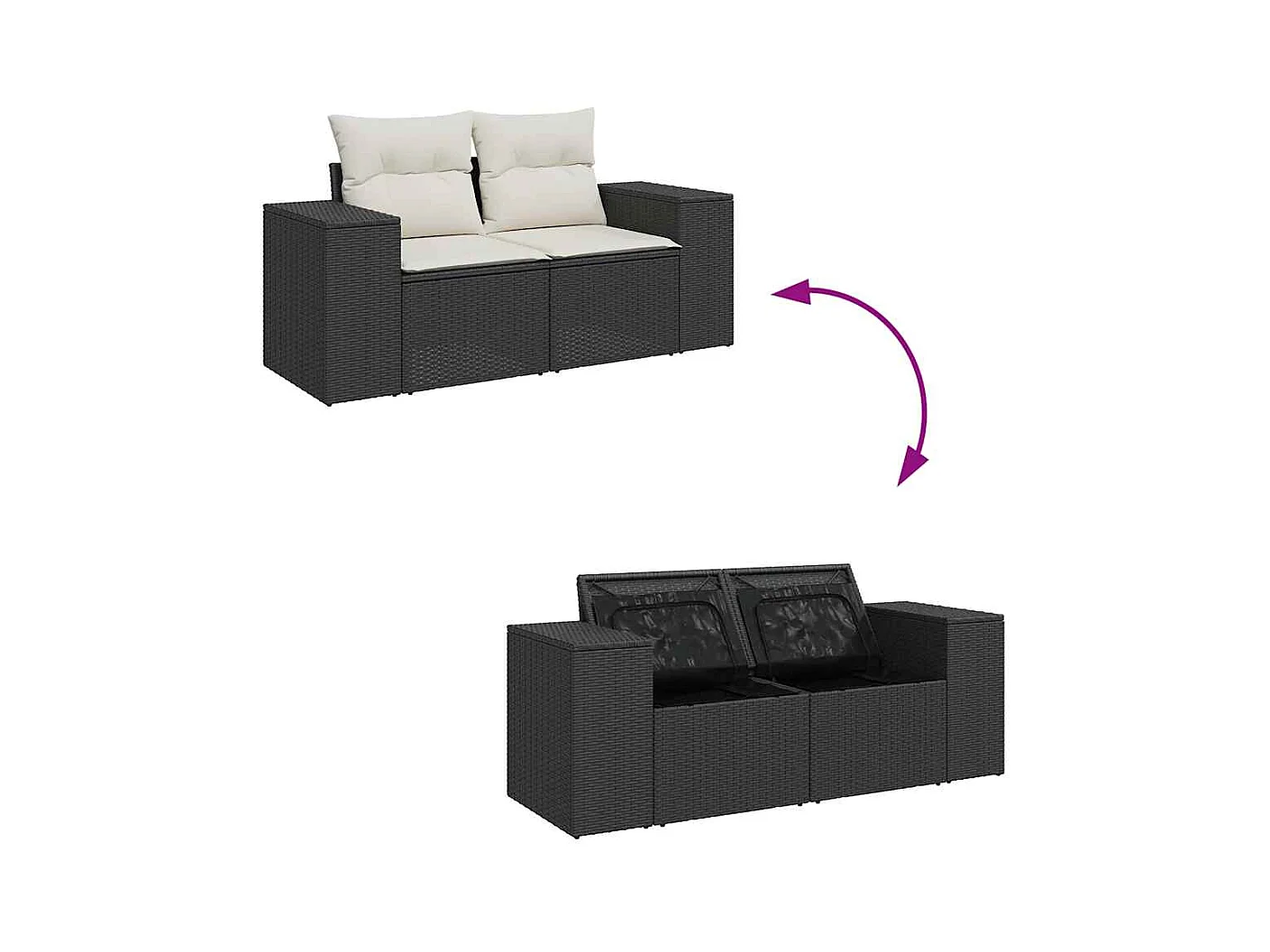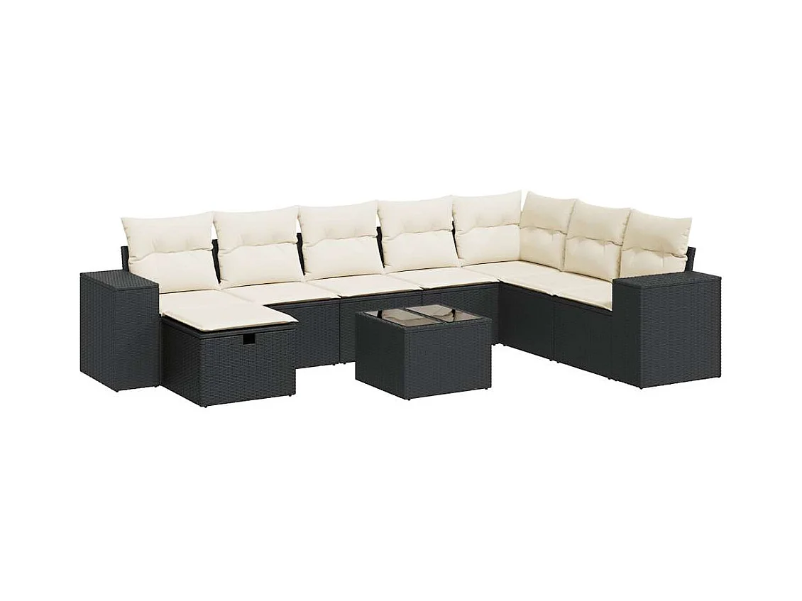 9-delige Loungeset met kussens poly rattan acacia zwart