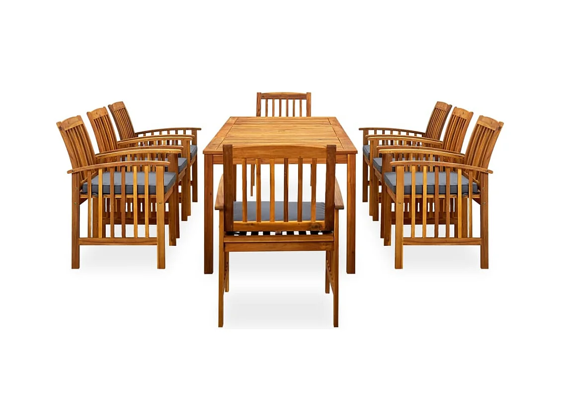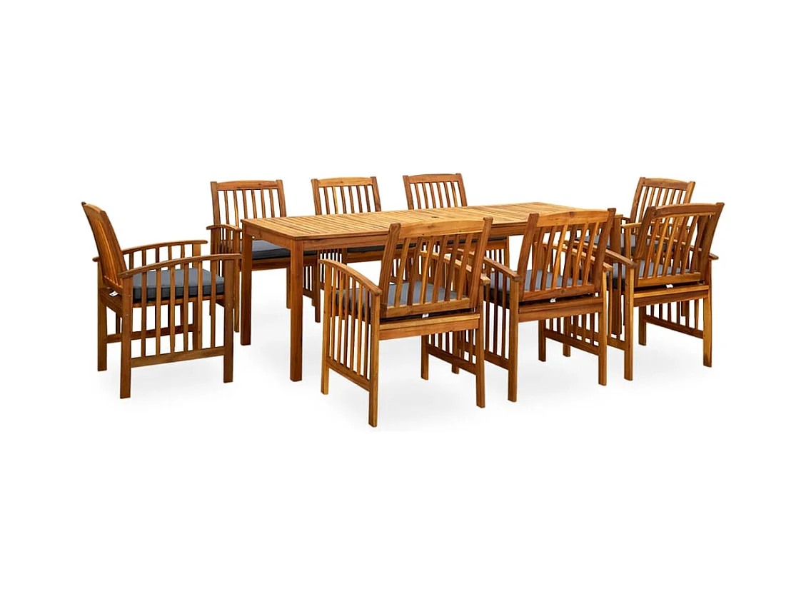 Ulvin 9-delige Tuinset met kussens massief acaciahout
