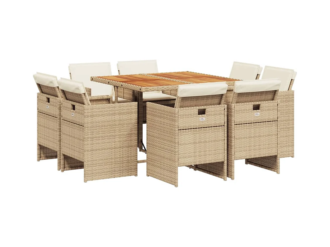 9-delige Tuinset met kussens poly rattan gemengd beige