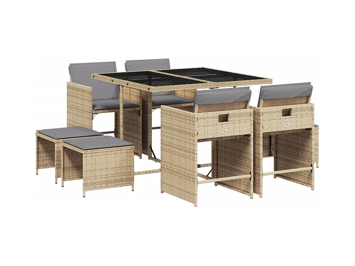 9-delige Tuinset met kussens poly rattan gemengd beige