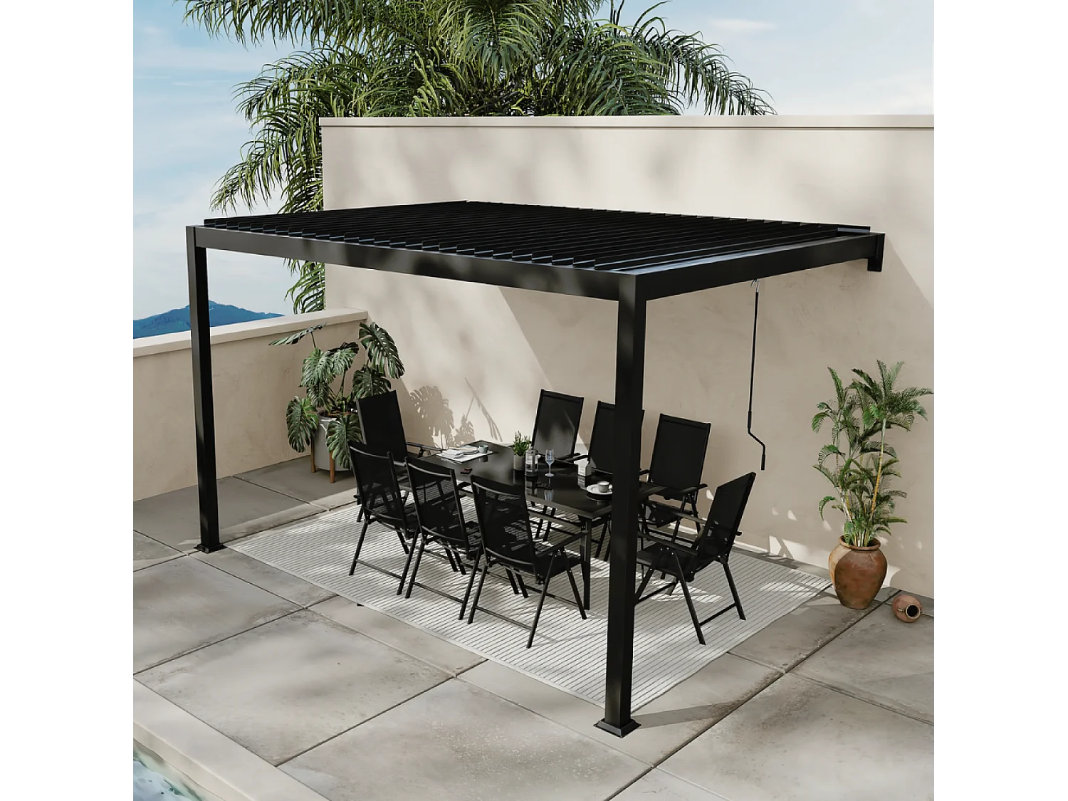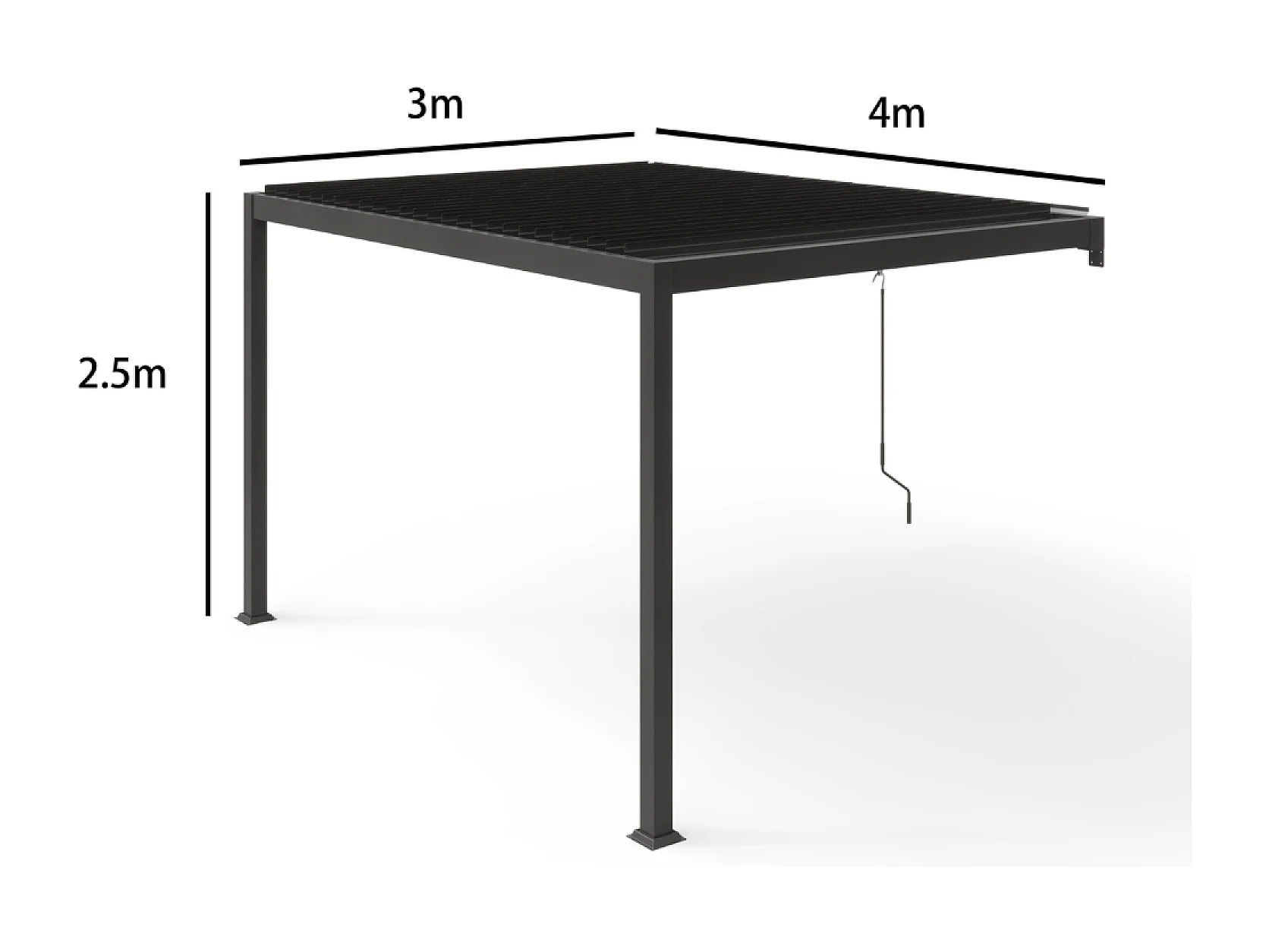 Aangebouwde Bioklimatische Pergola 3x4m AGADIR Donkergrijs Verzinkt Staal Verstelbare Lamellen
