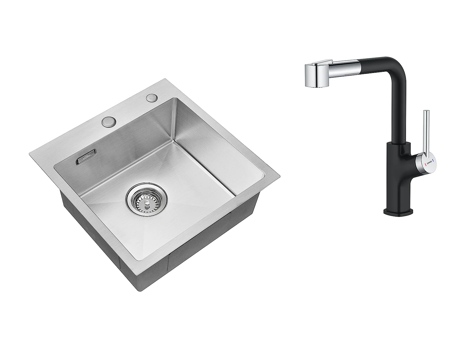 Aanrecht 1 Bak 45x45CM RVS 304, Inbouw en Opzetbaar + Draaibare Keukenkraan 360° Uittrekbare Handdouche