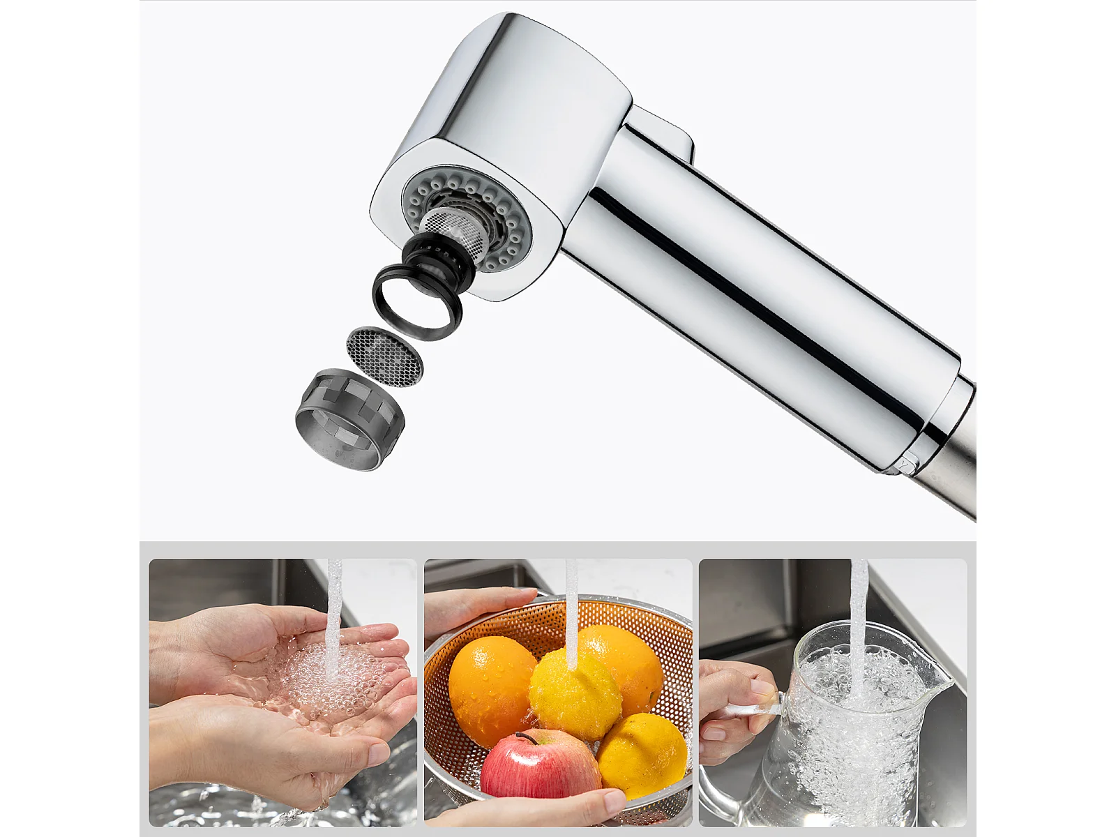 Cecipa max Keukenmengkraan met uittrekbare vuistdouche, 2 straalsoorten, 360 draaibare spoelbakkraan in geborsteld RVS, EU-model