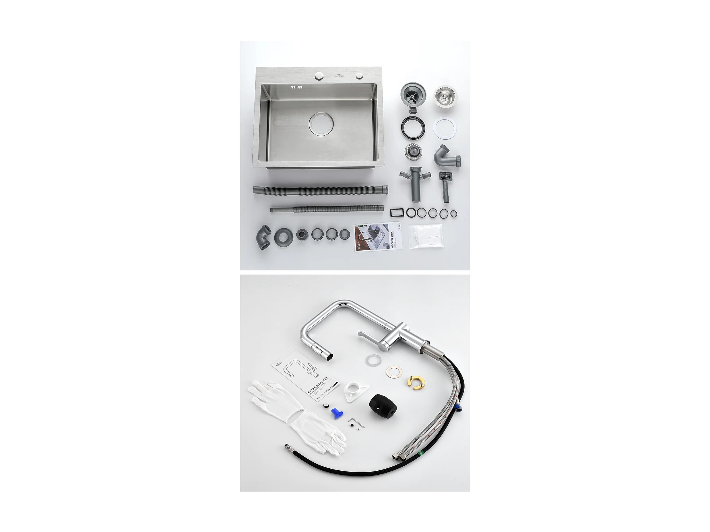 Aanrecht 1 Bak 45x45CM RVS+KranenE Keuken met 360° Draaibare Uittrekbare Handdouche,2 Functies, Demonteerbare Romper,Chroom