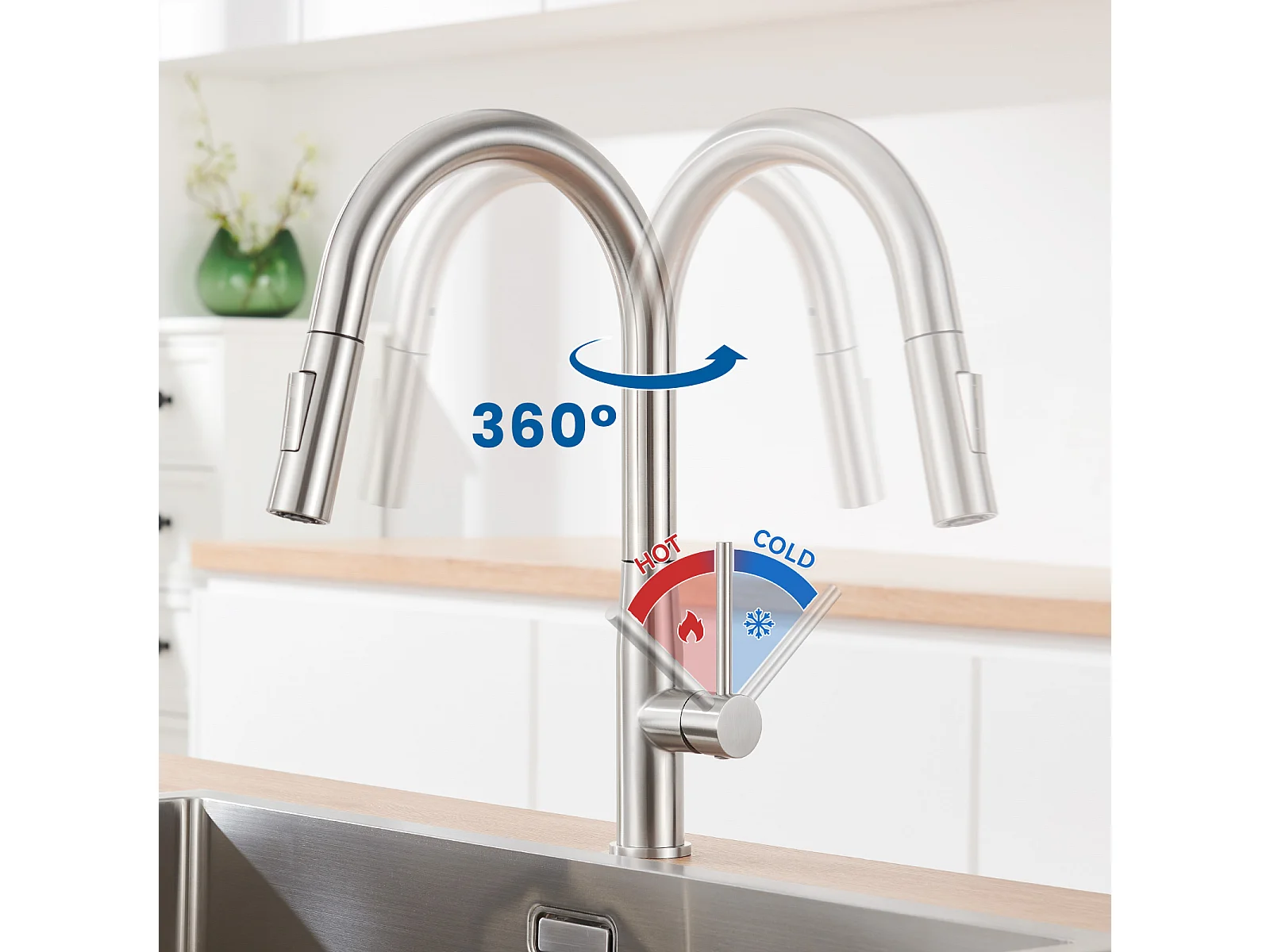 Cecipa max Keukenmengkraan met uittrekbare vuistdouche, 2 straalsoorten, 360 draaibare spoelbakkraan in geborsteld RVS, EU-model