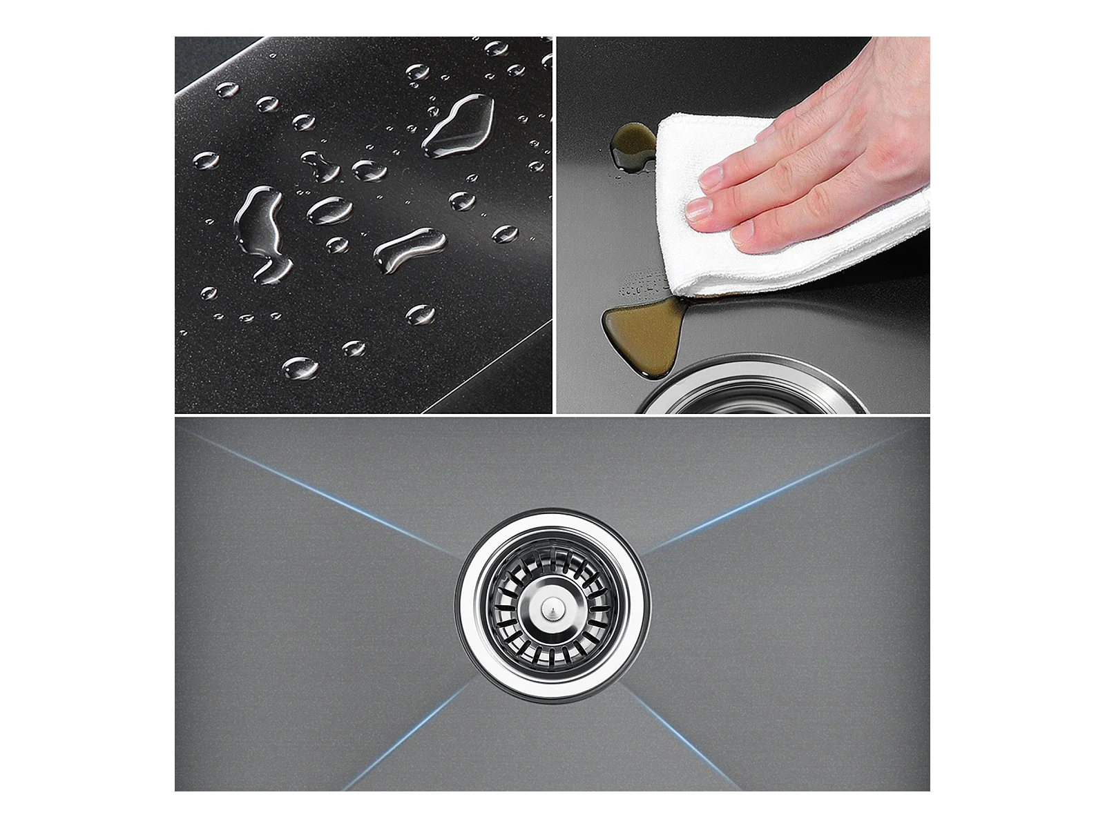 AuraLum Max Gootsteen 1 Bak 55x45x18.5CM RVS Inbouw Gootsteen Donkergrijze Aanrecht Keuken met Zeepdistructor/Drainage Set,EU Model