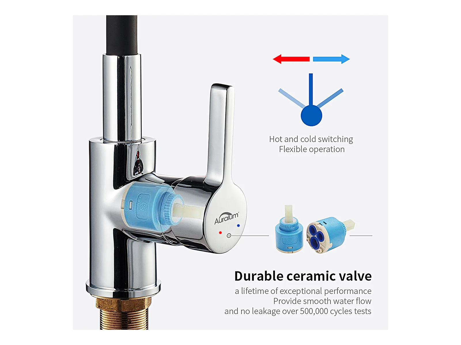 Aanrecht 1 Bak 55*45CM Zwart+RobinEn 360° Draaibare Keuken met Warm/Koud Water, Verchroomd