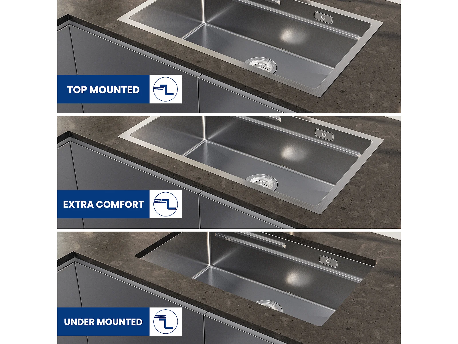 Cecipa max 1 wastafel keukenspoelbak 70×44×21CM geborsteld roestvrij staal ingebouwde spoelbak met afdruiprek en wastafel, EU-model