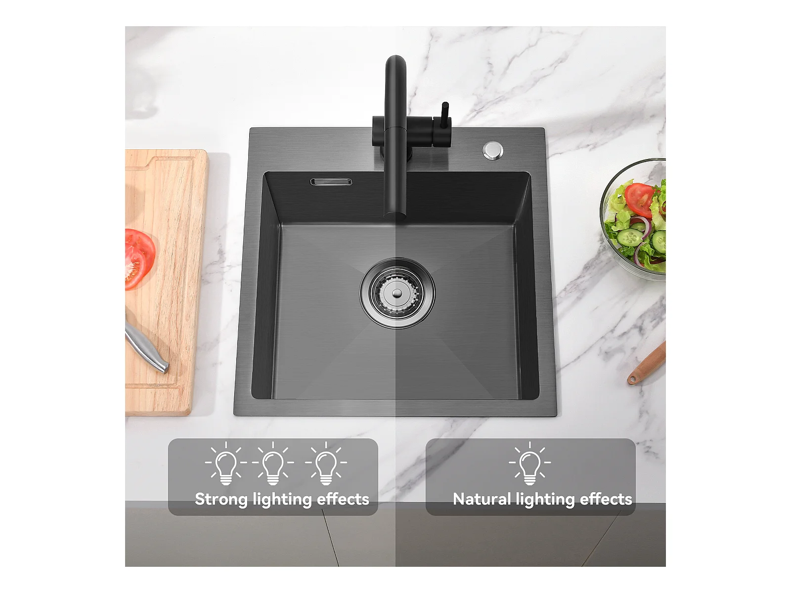AuraLum Max Aanrecht 1 Bak Roestvrij Staal Zwart 45x45CM Inbouw Wastafel en Opzet Wastafel met Montagegat voor Kraan, EU Model