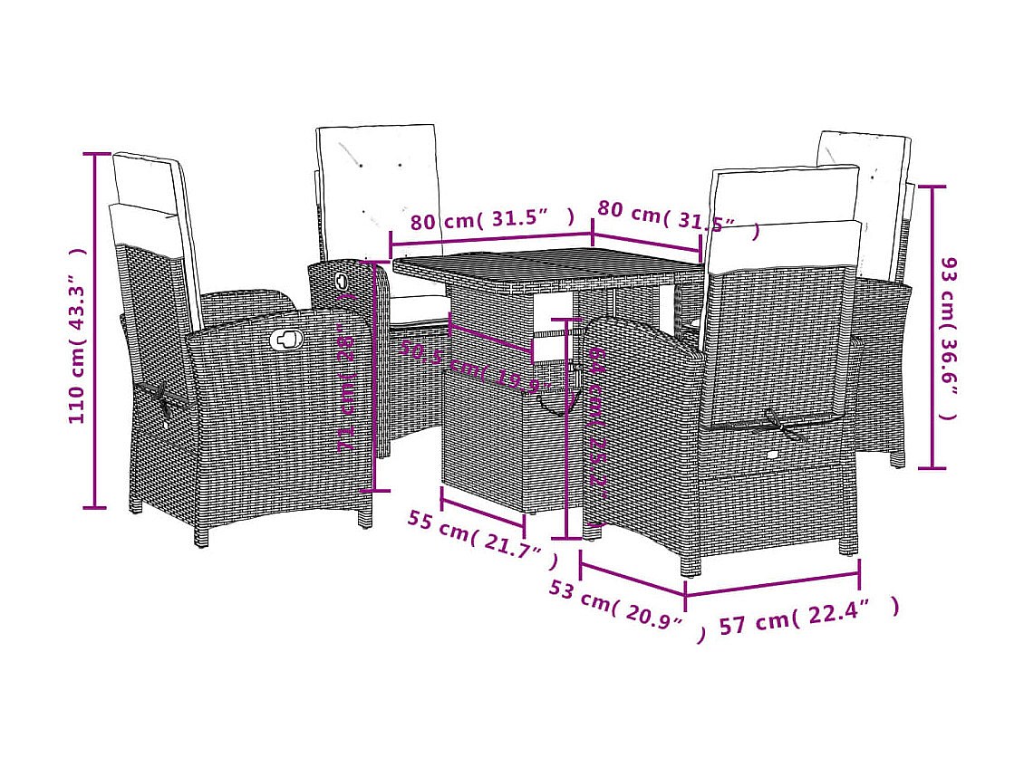 Coleville 5-delige Tuinset met kussens poly rattan zwart