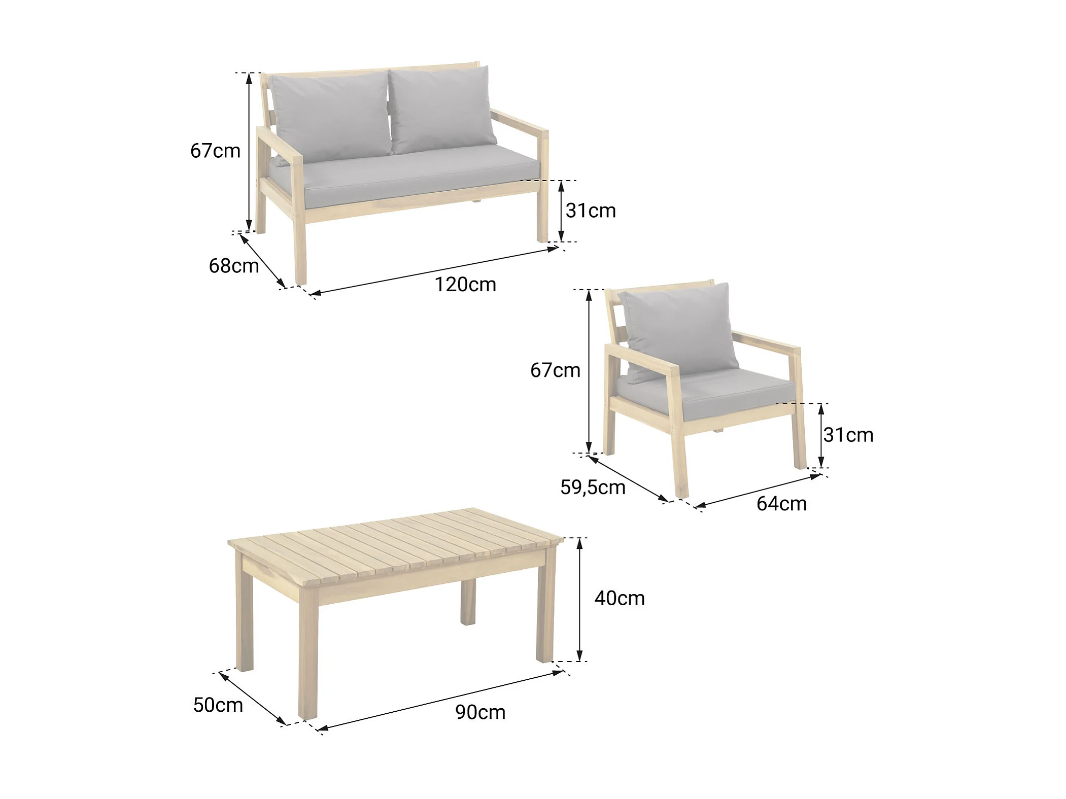 Acacia ARUBA tuinset 4 zits - grijze kussens
