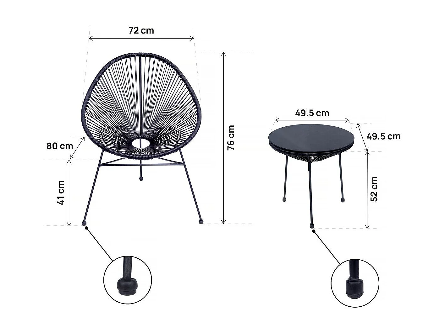 Acapulco tuinset van metaal "Odea" - 2 plaatsen - Zwart