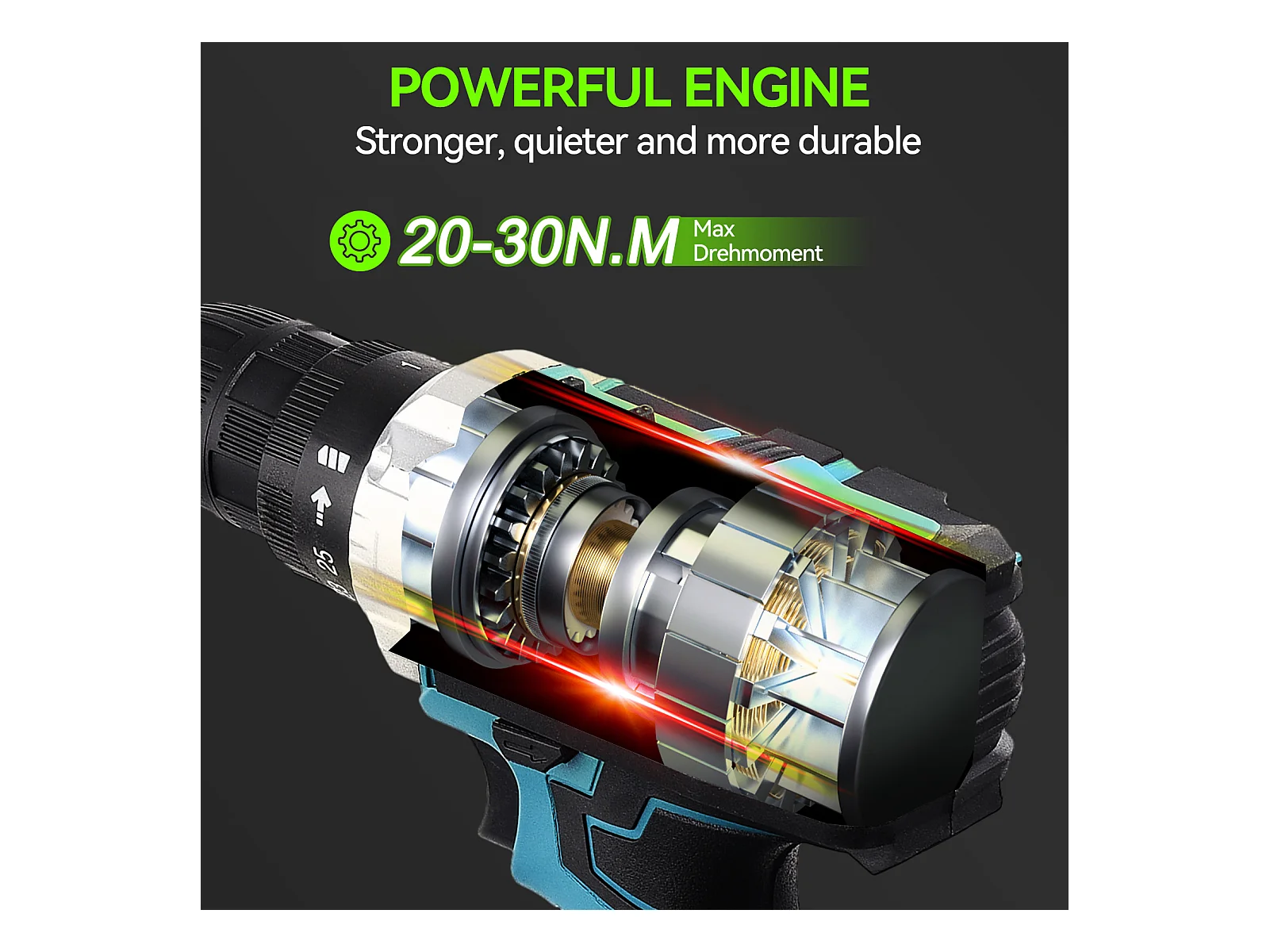 350W 21V boormachine 24+3 standen - 3 snelheidsinstellingen, 0-1850 RPM, max. koppel 65 Nm, draagbare boormachine - blauw (2 accu's)