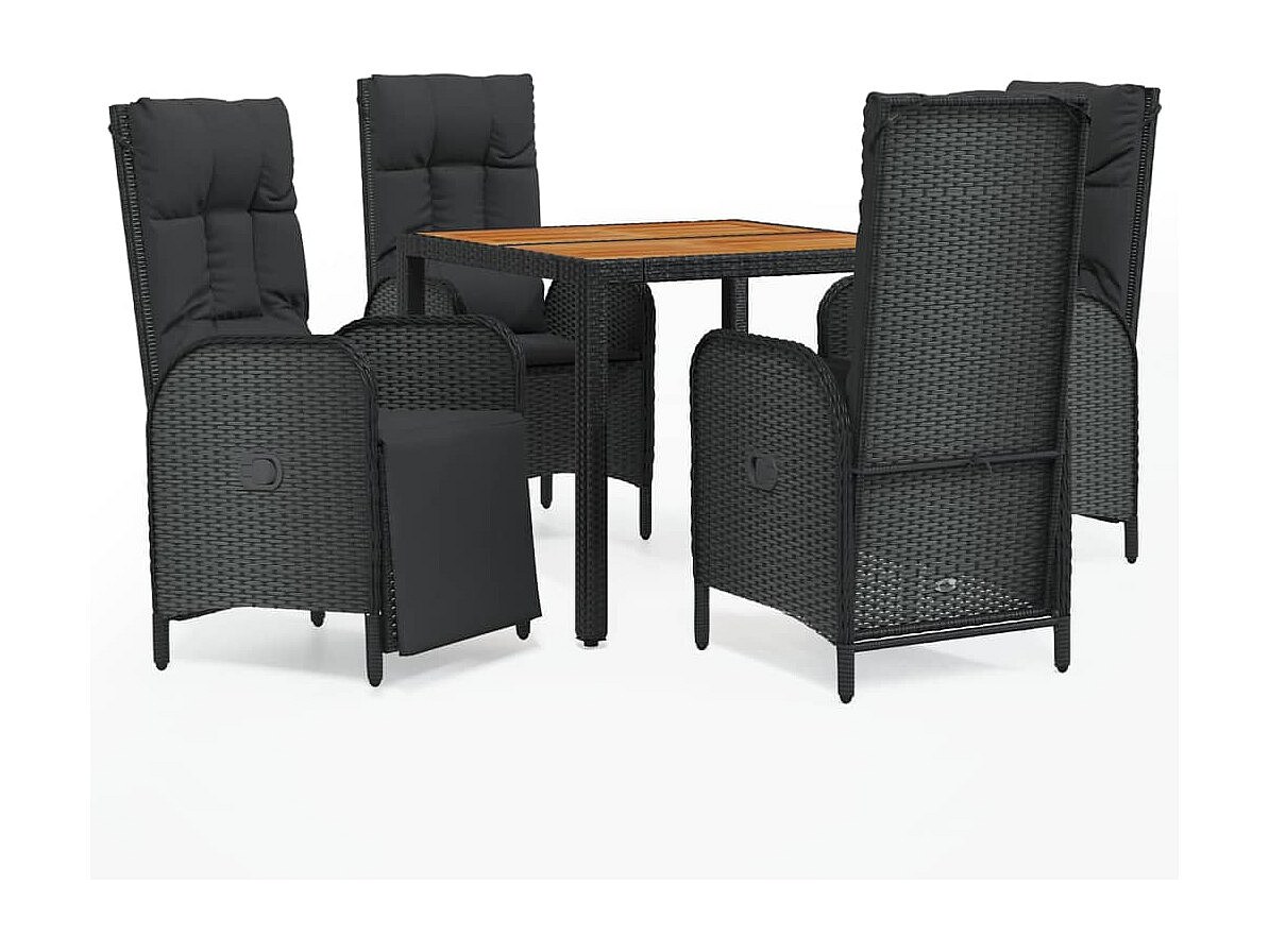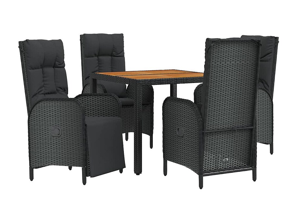 Arvild 5-delige Tuinset met kussens poly rattan zwart